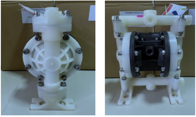 - เป็นหนึ่งในปั้มจ่ายสารเคมีที่เป็นระบบ Self-Priming ที่สามารถใช้ในงานด้านสูบจ่าย ในลักษณะแบบการดูดอัดเป็นจังหวะแบบ Stokeโดยมีแผ่นยางไดอะแฟรมเป็นตัวทําหน้าที่ดูด จ่ายของเหลวและหนืดชนิดวัสดุพลาสติก ( PP) มีคุณสมบัติ ทนต่อ การกัดกร่อนของสารเคมีหรือนํ้ามันได้เป็นอย่างดี มีอายุการใช้งานที่ยาวนาน สะดวกต่อการดูแลรักษา เพราะตัวไดอะแฟรมปั้ม มีระบบการทํางานโดยการใช้ลมเป็นตัวขับเคลื่อนและเมื่อตัวปั้มมีแรงดันที่สมดลุตัวปั้มจะหยดุทํางาน โดยอั้ตโนมัติไม่ต้องติดตั้ง วาลว์ ระบายแรงดันหรือ Relief Valve
